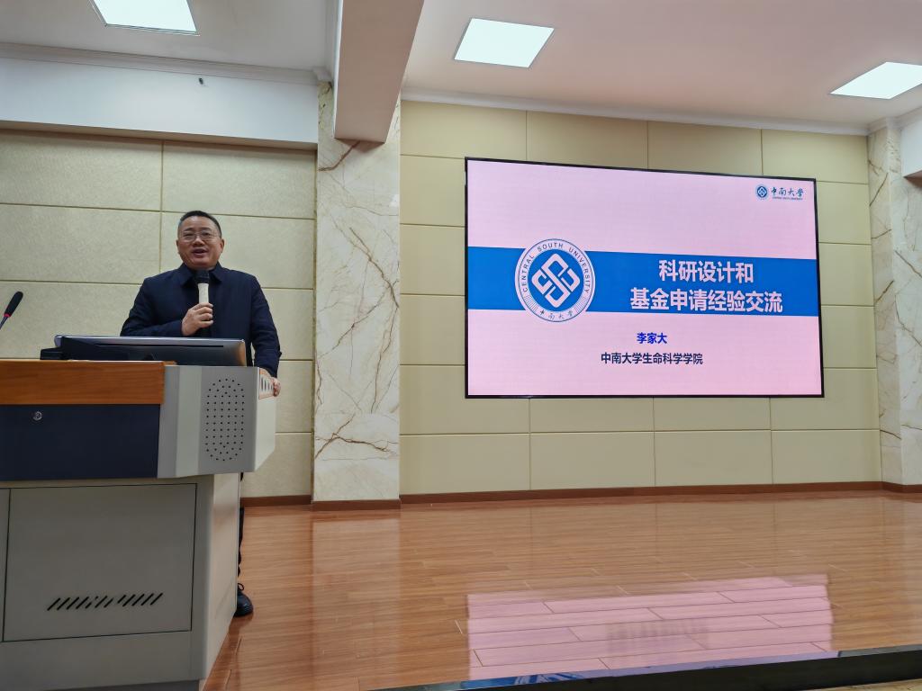 李家大教授是教育部“新世纪优秀人才”计划获得者,同时担任人类重大疾病动物模型研究湖南省重点实验室主任,在科研项目设计与基金申报领域成果丰硕。讲座中,李教授结合自身实践经验,围绕“科科研项目设计基本思路”“国家自然科学基金申请要点”等内容展开讲解——从科学问题的挖掘方法切入,以实例拆解了基金申请中“题目点睛”“摘要精准性提升”的实用技巧,为我校师生厘清了“科研产出与基金申报相互赋能”的实践逻辑。